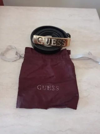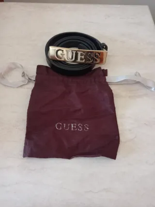 Elegante cintura Guess con fibbia dorata. Perfetta per completare ogni outfit. Taglia S - Cintura in pelle nera. - Fibbia in metallo color oro con logo Guess.