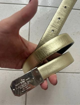 Vendo per inutilizzo splendida cintura vintage firmata "La Doppia Vita", iconico brand italiano attivo tra la fine degli anni '80 e l'inizio dei '90, celebre per i suoi accessori di alta qualità. Realizzata in pregiata pelle,morbida e resistente. La parte metallica è in ottone o metallo pesante con bagno d'oro, tipico della manifattura italiana d'epoca. Si distingue per una sezione frontale "a catena" in metallo dorato, caratterizzata da un motivo a spirali concatenate (stile etrusco/bizantino). L'oggetto è in ottime condizioni vintage. Presenta lievissimi ed eleganti segni d'età che nonne compromette l'estetica. Lunghezza 96 cm