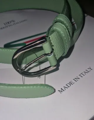 Elegante cintura in vera pelle italiana, con un design a tre colori che richiama la bandiera italiana. - Vera pelle italiana - Design a tre colori (bianco, rosso, verde) - Fibbia in metallo argentato - Made in Italy