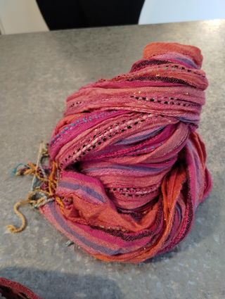 Bellissima cintura in pregiato tessuto operato e vera pelle. Stefanel. Lunghezza indossabile da 88 cm a 83 cm. Da tempo nell'armadio, mai indossata. Taglia L