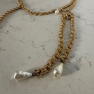 Elegante cintura gioiello vintage, perfetta per aggiungere un tocco di classe al tuo outfit. - Catena dorata finemente lavorata. - Dettagli con perle a goccia. - Design versatile e raffinato.