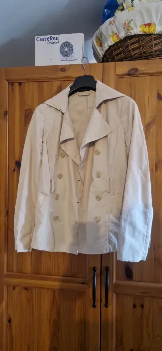 Giacca leggera da donna, perfetta per la mezza stagione. Il suo design versatile la rende adatta a diverse occasioni. - Chiusura con zip e bottoni. - Tasche frontali con patta. - Coulisse in vita per regolare la vestibilità. - Cappuccio integrato.