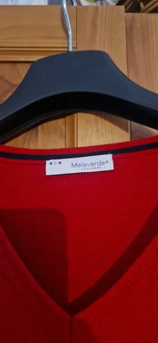 Maglioncino in lana con scollo a V. - Taglia L/XL. - Colore rosso vivace.