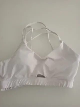 Top sportivo da donna, ideale per l'attività fisica. - Design con spalline incrociate. - Fascia elastica sul fondo. - Tessuto confortevole. Taglia M