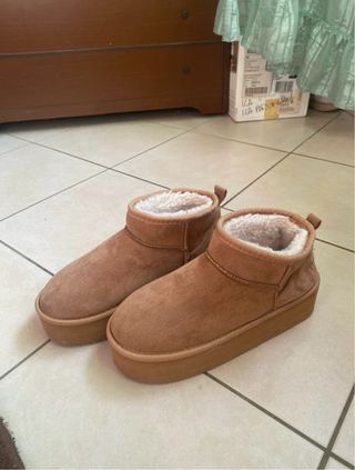 Stivaletti alla moda con un design moderno e confortevole. - Materiale scamosciato. - Fodera interna in morbida pelliccia sintetica. - Suola platform spessa e resistente. - Colore marrone versatile.