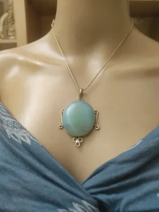 Elegante ciondolo con pietra di apatite naturale. - Montatura in argento. - Pietra di apatite naturale.