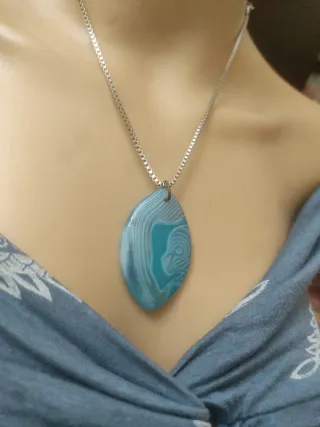 Elegante collana con pendente in agata naturale. - Pietra agata con sfumature blu e bianche. - Montatura in acciaio inossidabile.