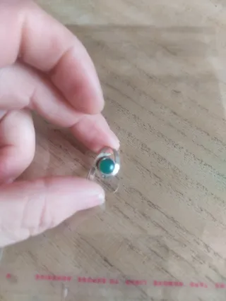 Elegante anello in argento con una pietra verde centrale. - Design moderno e raffinato. - Dettaglio con pietra incastonata.