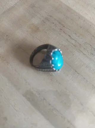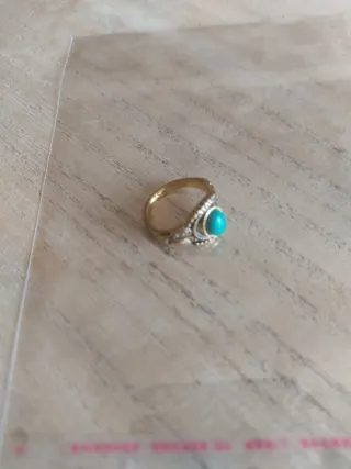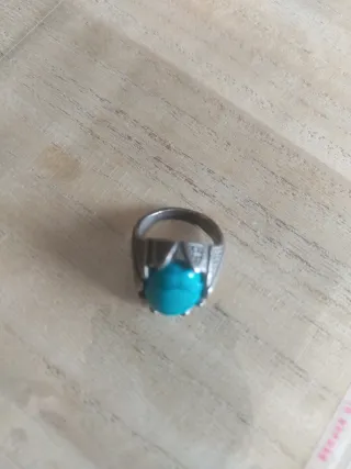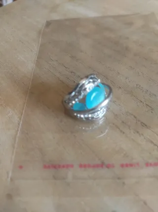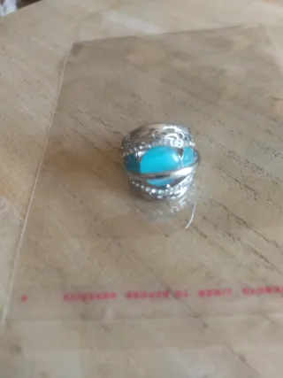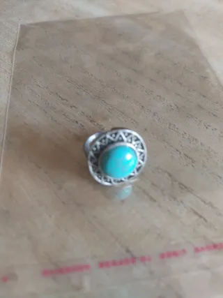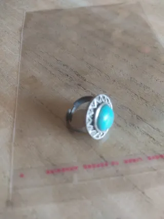 Anello con pietra turchese sintetico e finitura color argento. La misura è regolabile. - Design con dettagli decorativi. - Pietra centrale turchese.