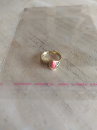 Anello in ottone con finitura dorata e una pietra rossa sintetica al centro. - Pietra rossa sintetica a forma di goccia. - Dettagli decorativi sul gambo dell'anello.