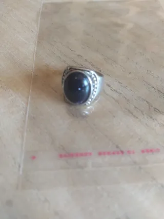 Elegante anello con pietra naturale nera e finitura in acciaio. Il design è moderno e la misura è regolabile per adattarsi a diverse dita. - Pietra naturale nera. - Montatura in acciaio. - Misura regolabile.