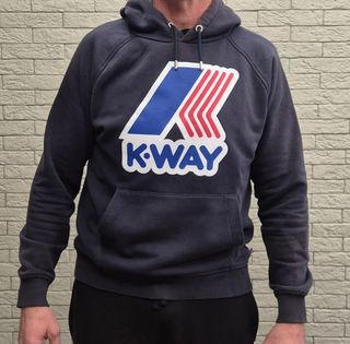 Integra e in buono stato, colore blu. Laccetti al collo, tasca a marsupi sulla pancia, elastico in vita e sulle maniche. Non ha buchi e nessuna lacerazione. 80% cotone, 20 % poliestere.