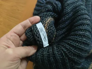 Mantella o sciarpa scaldacollo realizzata in lana alpaca e acrilico, morbida e calda. Presenta un design a righe ondulate. - Materiale: lana alpaca e acrilico. - Design: righe ondulate.