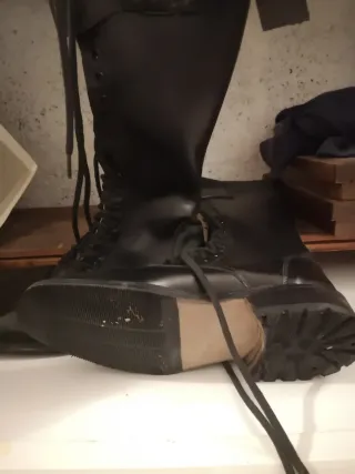Stivali alti in pelle, perfetti per motociclisti o per un look ispirato alla polizia. - Materiale: vera pelle - Design stringato - Altezza stivale: fino al ginocchio