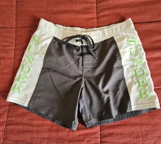 Costume da bagno Uomo Taglia S Sundek con un design a blocchi di colore. - Pannelli laterali bianchi con scritta verde - Pannello centrale grigio. - Coulisse in vita per una vestibilità regolabile. - tasca posteriore con apertura a strappo e con logo