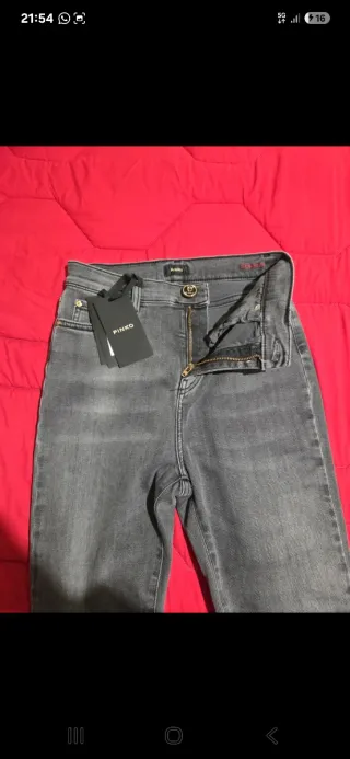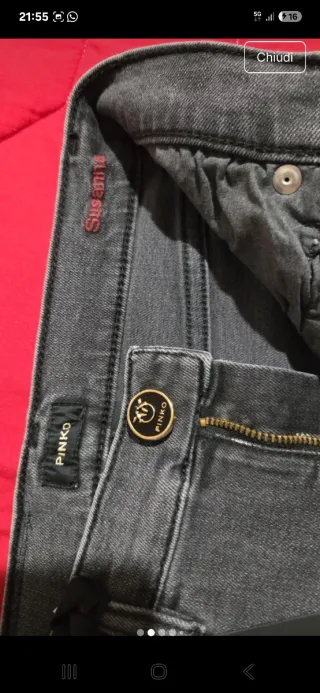 Splendido paio di jeans firmati Pinko in un raffinato lavaggio grigio fumo/antracite. Il modello è caratterizzato da un taglio contemporaneo e super femminile. Dettaglio unico: Originali spacchi frontali sul fondo gamba che creano un effetto a zampa molto chic, perfetti per mettere in risalto scarpe con tacco o sneakers particolari. Brand: Pinko (etichetta originale ancora attaccata/visibile). Condizioni: Ottime, come si vede dalle foto. Vestibilità: Vita media/alta, tessuto leggermente elasticizzato per il massimo comfort. .