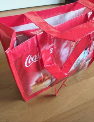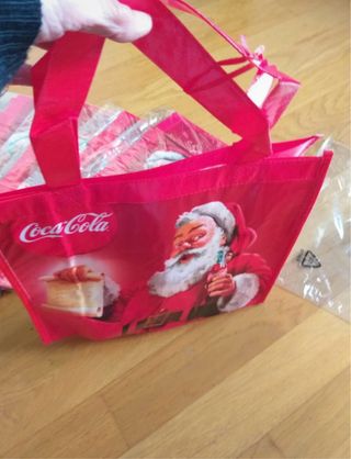 Borse per consegnare i regali by CocaCola Con due manici profondi, interamente foderate come da foto, etichetta tonda pendente a forma di sfera natalizia su cui scrivere il destinatario del regalo Da usare per uso personale o come confezione regalo N.6 disponibile Prezzo indicato per un pezzo Nuovo, nella confezione originale, mai usate