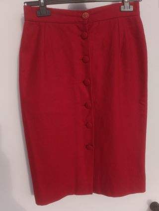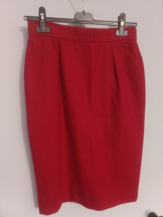 Gonna pesante, foderata, di colore rosso. - Tessuto spesso e caldo. - Fodera interna per maggiore comfort.