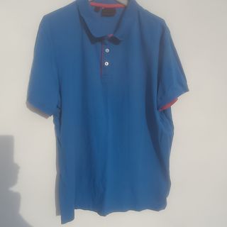 Maglietta polo da uomo di colore blu con un tocco di stile dato dai dettagli rossi. - Colletto a contrasto. - Abbottonatura frontale. - Orlo delle maniche con finitura rossa.