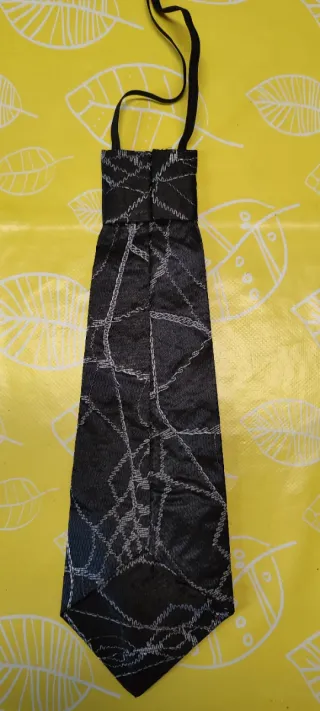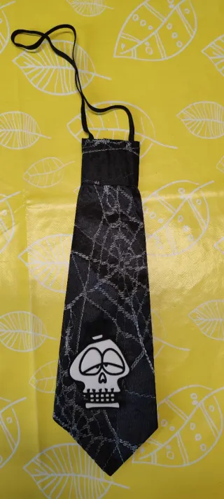Cravatta a tema carnevale con un divertente teschio stilizzato e motivo a ragnatela. - Fantasia a ragnatela. - Applicazione teschio bianco e nero.