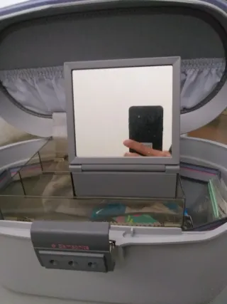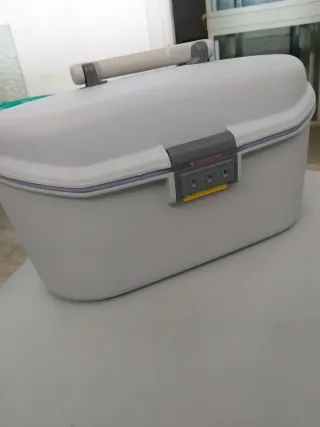 Beautycase Samsonite, pratico e resistente. - Chiusura a combinazione. - Manico superiore per un facile trasporto. - Design elegante e funzionale. Beautycase grigio Perla rigido marca Samsonite serie Oyster Dimensioni: larghezza 20 cm, lunghezza 25 cm, altezza 20 cm compresa la maniglia Mai usato, come nuovo completo di tasche con elastico per contenere i prodotti di bellezza, completo di separatore bigiotteria o prodotti per il trucco con specchio che si alza nel momento dell'utilizzo Lettere adesive per personalizzarlo co le iniziali del possessore Nel.mio armadio personale disponibile valigia rigida con ruote marca Samsonite