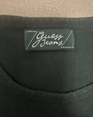 Maglia a maniche lunghe da donna con un design accattivante. - Logo Guess ricamato con perline nere. - Girocollo classico. - Maniche lunghe.