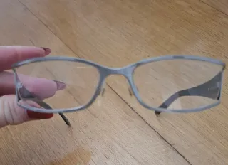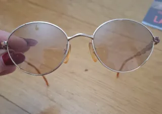 Occhiali da donna con montatura rotonda. - Montatura color oro. - Lenti color arancio. - Naselli in silicone.