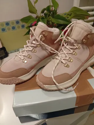 stivaletti invernali da donna in perfette condizioni modello Geox D Oliviera ABX foderati in pelliccia sintetica e realizzati in pelle scamosciata, di colore rosa o beige chiaro. Caratteristiche principali Marca: Geox Modello: D Oliviera ABX Materiale esterno: Pelle scamosciata Fodera: Calda pelliccia sintetica Colore: Tonalità rosa/beige Tecnologia: Probabilmente dotati di Impermeabili e traspiranti, offrendo isolamento termico ottimale per l'inverno. Dettagli: Presentano una chiusura con lacci e occhielli color oro rosa/ottone e una punta rinforzata. Questi stivali sono ideali per le giornate invernali all'aperto, offrendo comfor