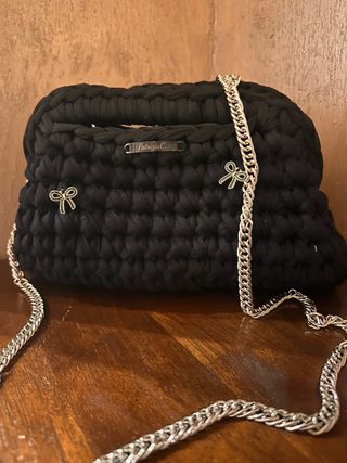 Borsa fatta a mano all'uncinetto, con un design unico e dettagli curati. - Realizzata con filato resistente. - Decorata con una catena colorata. - Chiusura sicura.