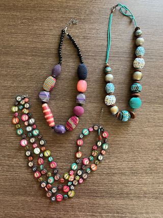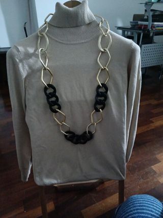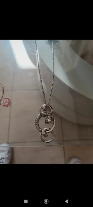 Collana donna in lega dorata e anelli in plastica lunga ,come nuova.