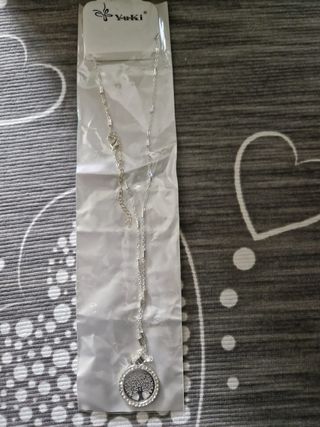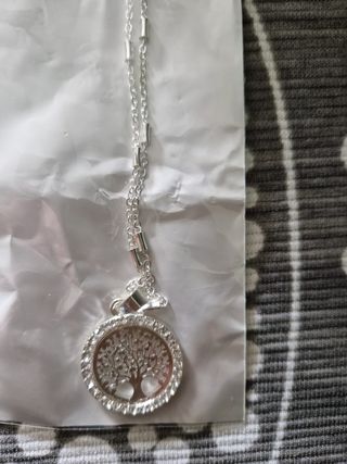 Collana in acciaio con ciondolo Albero della Vita con brillantini sul tronco. Lunghezza catenina 44 cm. Diametro ciondolo 3 cm.