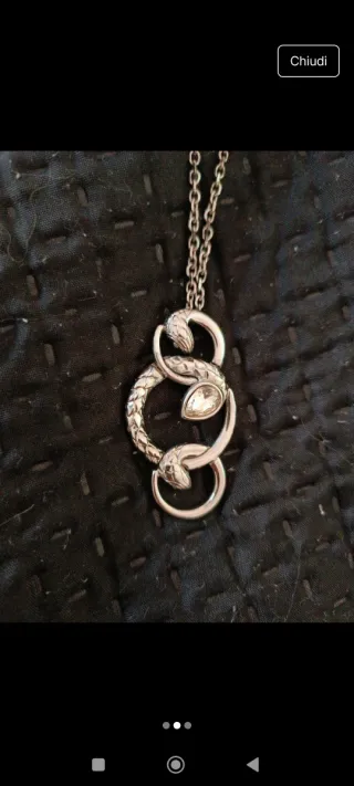 Elegante collana da donna placcata argento 925 sterling cm 45 sottile ma molto luminosa e raffinata nuova con sacchetto in organza. - Design a serpente. - Chiusura a moschettone.