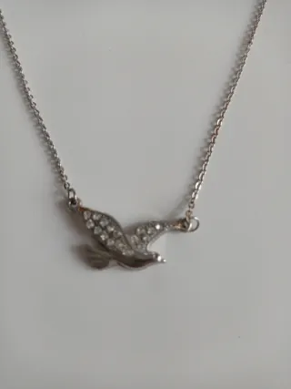 Delicata collana da donna con un ciondolo a forma di uccello stilizzato, impreziosito da piccoli cristalli. Venduto con la sua confezione da regalo. - Ciondolo a forma di uccello in volo. - Dettagli scintillanti. - Chiusura a moschettone.