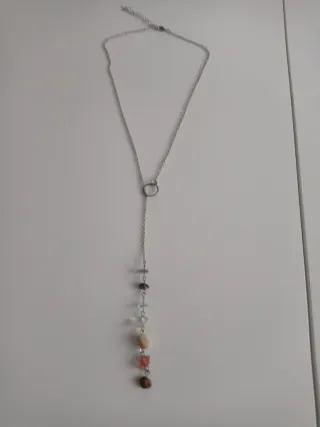 Collana da donna con un design unico e con 7 pietre naturali. Venduta con la sua confezione regalo. - Lunghezza regolabile. - Ciondolo a forma di cerchio. - Pietre colorate disposte a cascata.