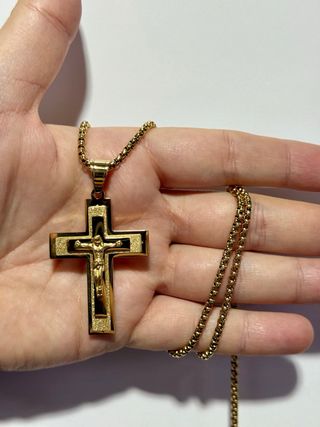Misura Collana : 60cm ⛓️ Materiale : acciaio inossidabile Colore : oro Con pendente a croce ✝️, dal design classico e deciso. La maglia è in stile veneziano, robusta e lucente, perfetta per chi cerca un accessorio spirituale ma anche elegante da indossare ogni giorno. Il crocifisso presenta dettagli scolpiti e finitura dorata con contrasti neri che ne esaltano la forma e il significato. Adatta sia per uomo che donna, ideale come regalo religioso 🎁 o come simbolo personale di fede e protezione 🙏.