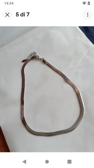 Collana piatta in acciaio, adatta sia per uomo che per donna, con moschettone classico. Pari al nuovo.