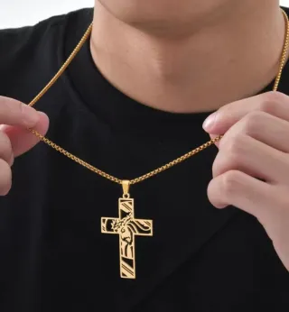 Croce con design artistico in acciaio chirurgico, finitura in oro 18 carati. Robusto, luminoso e durevole. Un simbolo di protezione ed eleganza che si abbina con tutto. 📦 Spedizione rapida | 🛡️ Resistente all'acqua | 💝 Ideale come regalo