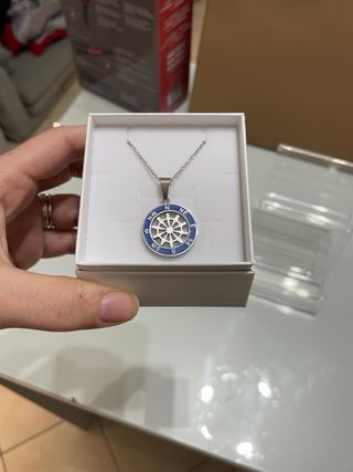 Collana da uomo con pendente a forma di rosa dei venti. - Materiale: acciaio. - Design: medaglietta con rosa dei venti.