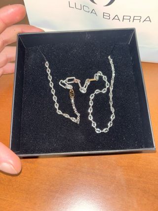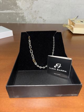 Elegante collana da uomo LUCA BARRA, un accessorio che aggiunge un tocco di stile, molto moderno e attuale, praticamente mai usato in perfetto stato, con insieme la certificazione di autenticità del negozio. - Design moderno con maglie alternate. - Materiale in acciaio resistente - in parte con stile di catena misto tra argento e oro