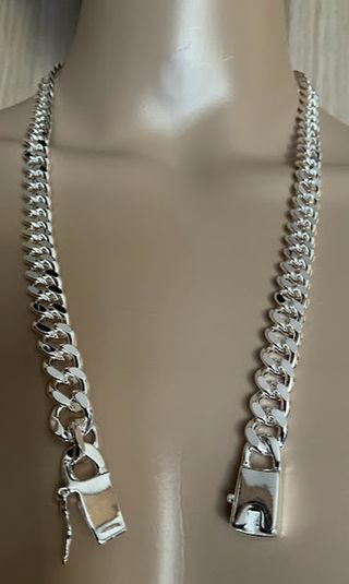 Collana da uomo con design a catena cubana, perfetta per uno stile audace. - Finitura color argento. - Chiusura a scatto sicura.