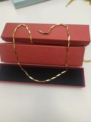 Bellissima collana a spina di pesce (o catena a serpente piatta) realizzata in argento 925 con placcatura in oro 14 k. Questo stile è caratterizzato da maglie strette e uniformi che creano una superficie liscia e riflettente. Stile della maglia: Spina di pesce (herringbone) o catena a serpente piatta (flat snake chain). Misura 60,5 cm x 20 gr La stessa ma con un bagno d'oro più fresco è proposta a 100€ e un'altra da 125€ scontata a 88€. Leggermente sbiadito il bagno d'oro se gli si rifacesse la placcatura tornerebbe a spendere. In vendita su altre piattaforme online!