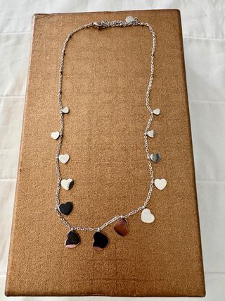 Collana in acciaio con pendenti a forma di cuoricino. La catena è impreziosita da piccole sfere. - Design con cuoricini. - Materiale in acciaio.