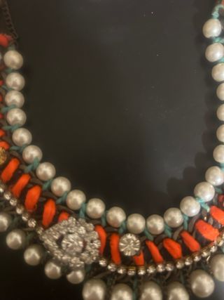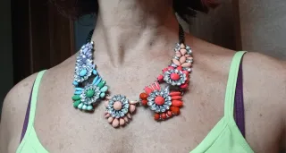 Particolare collana colorata, perfetta per aggiungere un tocco di vivacità al tuo outfit. Bellissima sull'abbronzatura. - Design a fiore con inserti colorati. - Diverse tonalità di colore. - Dettagli luminosi. - Chiusura con dettagli luminosi - Come nuova