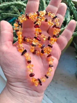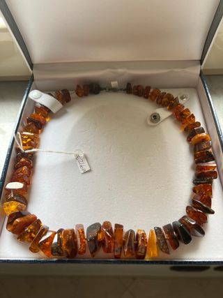 Collana realizzata con autentica ambra baltica grezza. Ogni pezzo è unico. - Ambra grezza naturale. - Tonalità calde che variano dall'arancio al marrone. - Chiusura sicura.