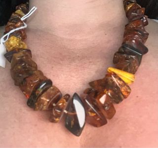 Bellissima collana realizzata con pezzi unici di ambra naturale. - Pezzi irregolari e sfaccettati. - Chiusura a moschettone in metallo.