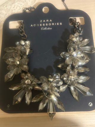 Collana Zara Accessories Collection con dettagli floreali e cristalli. - Design unico e scintillante. - Catena robusta. - Perfetta per aggiungere un tocco di eleganza a qualsiasi outfit.