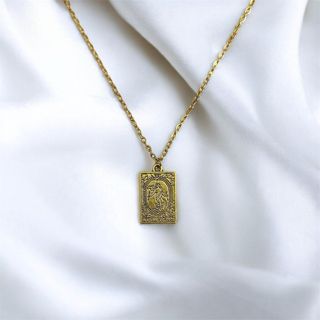 Collana con pendente a forma di carta dei tarocchi Judgement. - Placcatura in oro. - Design dettagliato della carta dei tarocchi. - Acciaio inossidabile