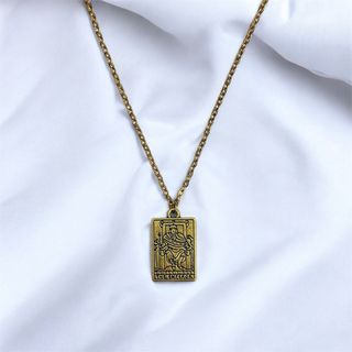 Collana con ciondolo a forma di carta dei tarocchi The Emperor. - Ciondolo placcato oro. - Design ispirato ai tarocchi. -Acciaio inossidabile -Non scolorisce e non causa allergie