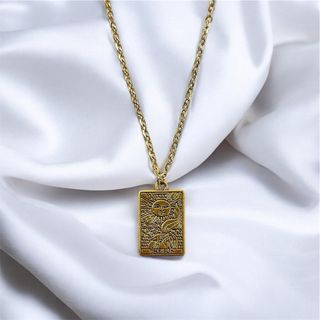Collana con ciondolo a forma di carta dei tarocchi The Sun. - Ciondolo placcato oro. - Design ispirato ai tarocchi. -Acciaio inossidabile -Non scolorisce e non causa allergie