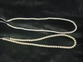 Collana realizzata con vere perlendi Ottima qualità - Design elegante e raffinato. Vendo una collana una è di colore bianco misura 39 cm l'altra è leggermente di colore avorio misura 38cm.Sono già montare da inserire un moschettone a vostro piacere La vendita è di 100 euro per una collana